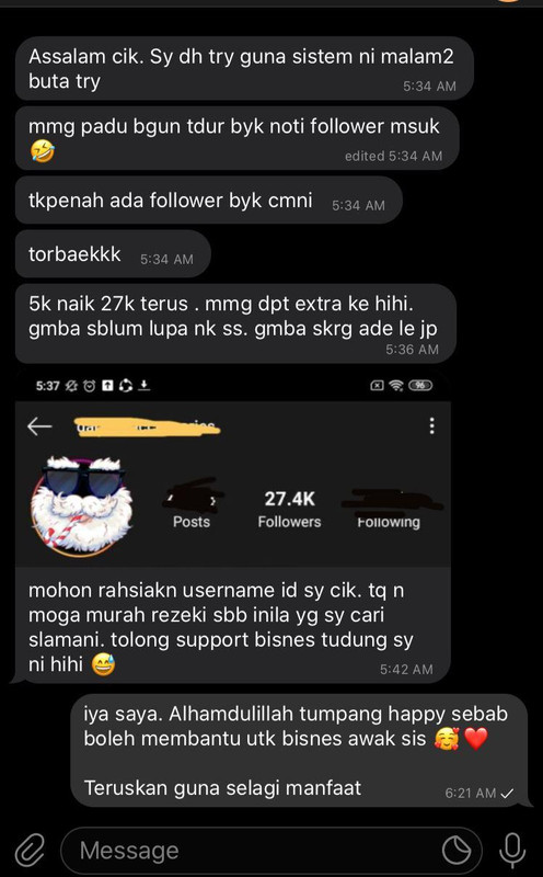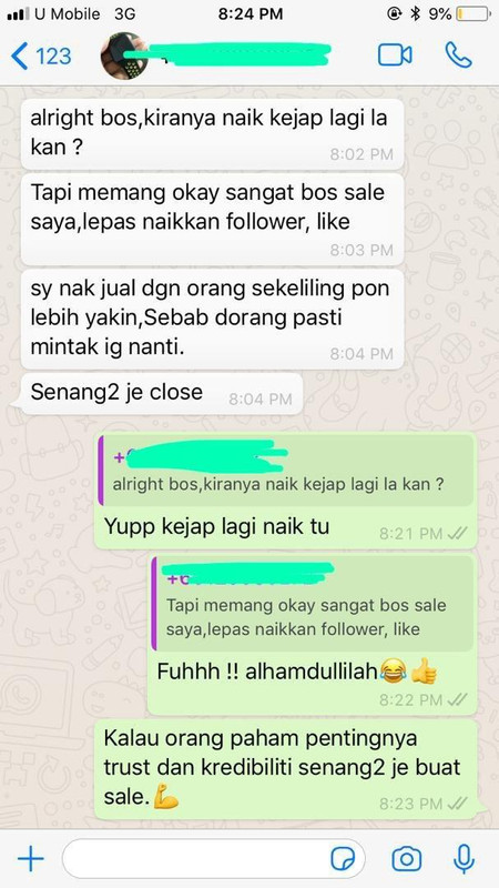 Perkara ni menyebabkan customer terus tiada perasaan skeptical/ ragu-ragu nak beli tu . Perasan ig artis2 or top2 ig famous ,baru open bisnes je dah 50k follower kan ?